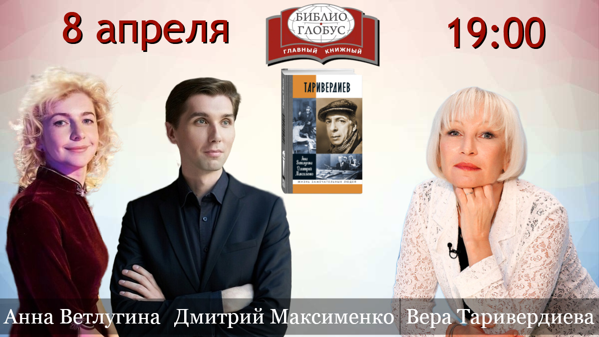 8 апреля (среда) в 19:00 в презентации книги Анны Ветлугиной и Дмитрия Максименко «Таривердиев» примет участие супруга композитора — Вера Гориславовна Таривердиева.