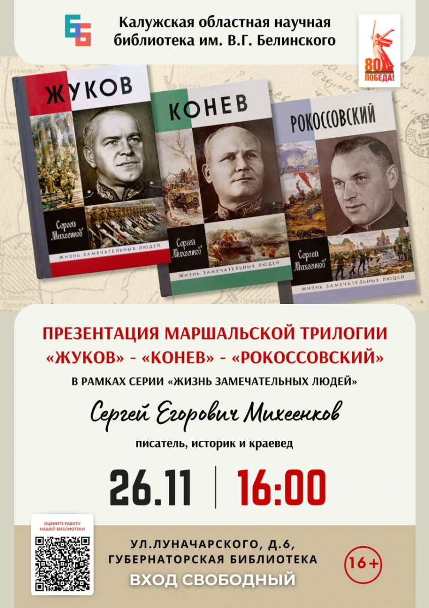 Добавим, что 26 ноября юбиляр выступит в Калужской областной научной библиотеке имени В. Г. Белинского.