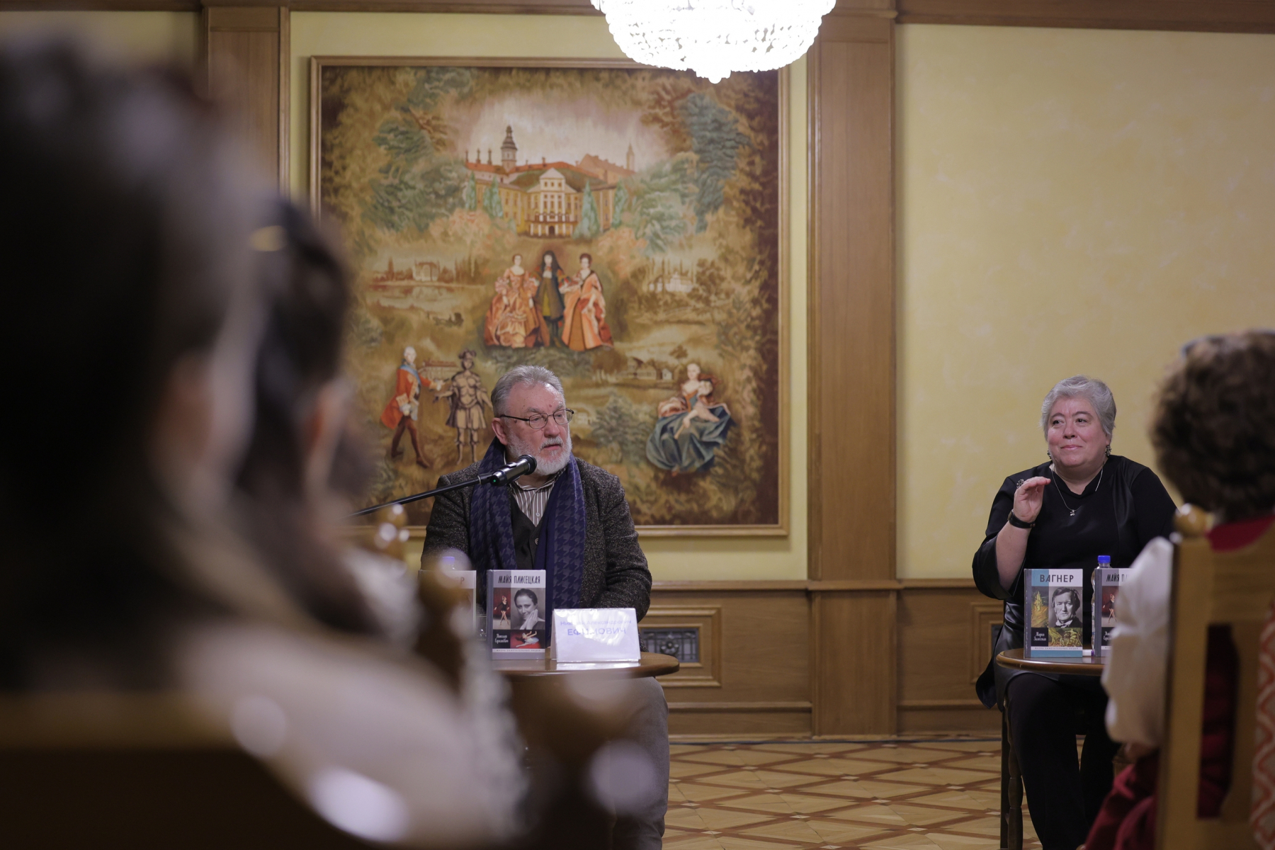 В рамках этого масштабного культурного форума главный редактор — директор нашего издательства Мария Залесская и заслуженный журналист России, председатель Телерадиовещательной организации (ТРО) Союзного государства России и Беларуси Николай Ефимович выступили в Большом театре Беларуси. В Гобеленовом зале они рассказали о своих книгах — биографиях Рихарда Вагнера и Майи Плисецкой.